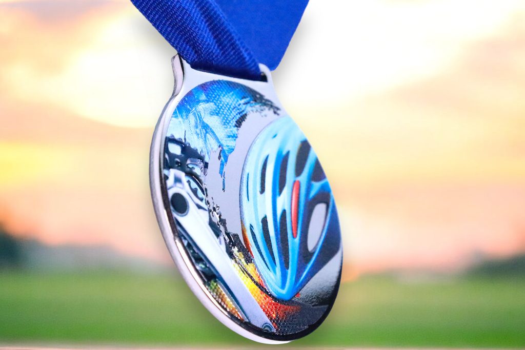 Kovová medaile s UVHQ potiskem a speciálním 3D lakem. Ceny medailí za 1 kus včetně stuhy.
