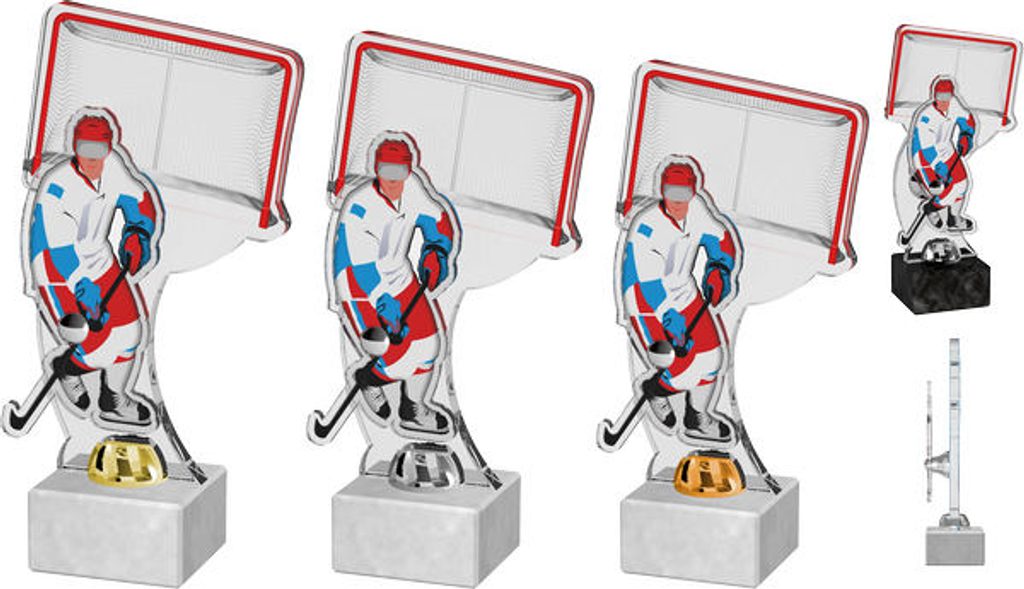 Akrylátová trofej. Podstavec bílý. V ceně trofeje není zahrnuta cena štítku. Akrylátový motiv 1 cm. Držák motivu A-zlato, B-stříbro, C-bronz (možno vyměnit). Podstavec bílý nebo černý. Výšky trofejí jsou orientační. Dárkové balení.