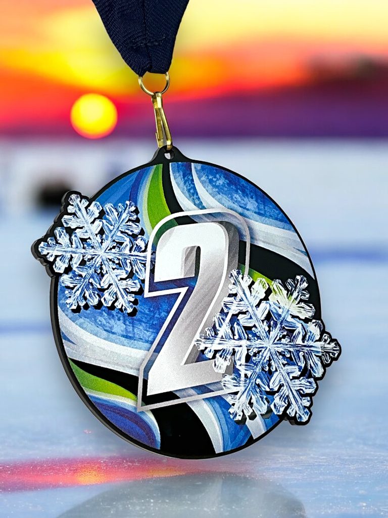 Akrylátová medaile. Tloušťka 0,3 cm. Cena medaile za 1 kus včetně stuhy. Speciální černý lesklý akryl. Speciální vrstvený tisk.