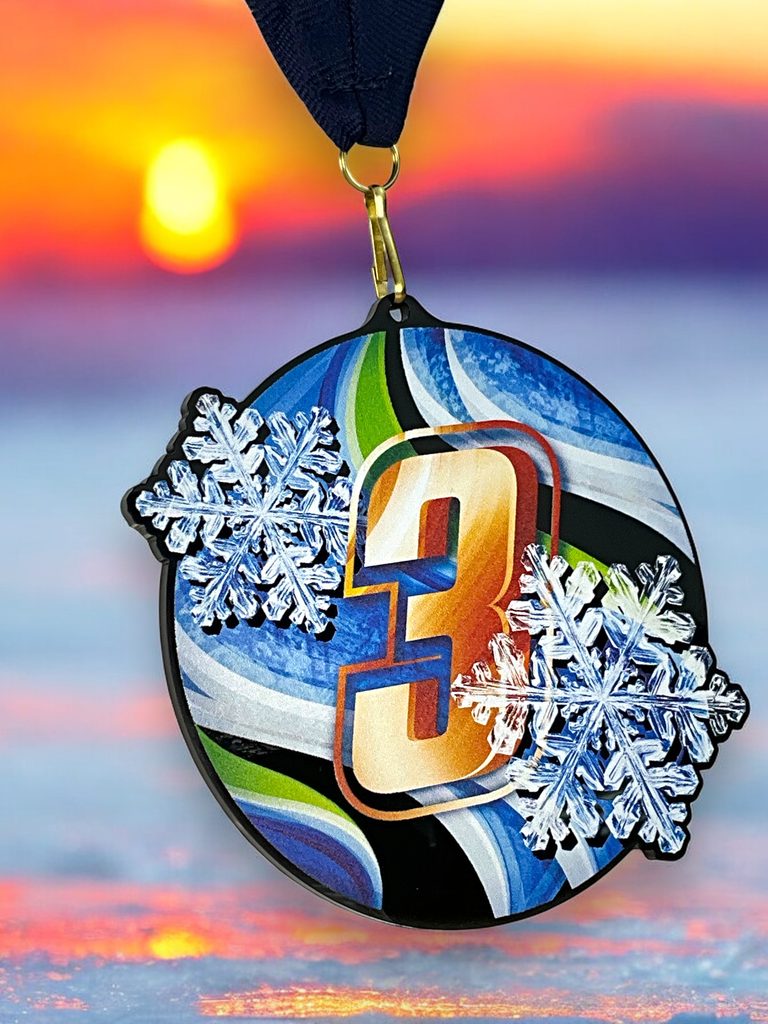Akrylátová medaile. Tloušťka 0,3 cm. Cena medaile za 1 kus včetně stuhy. Speciální černý lesklý akryl. Speciální vrstvený tisk.
