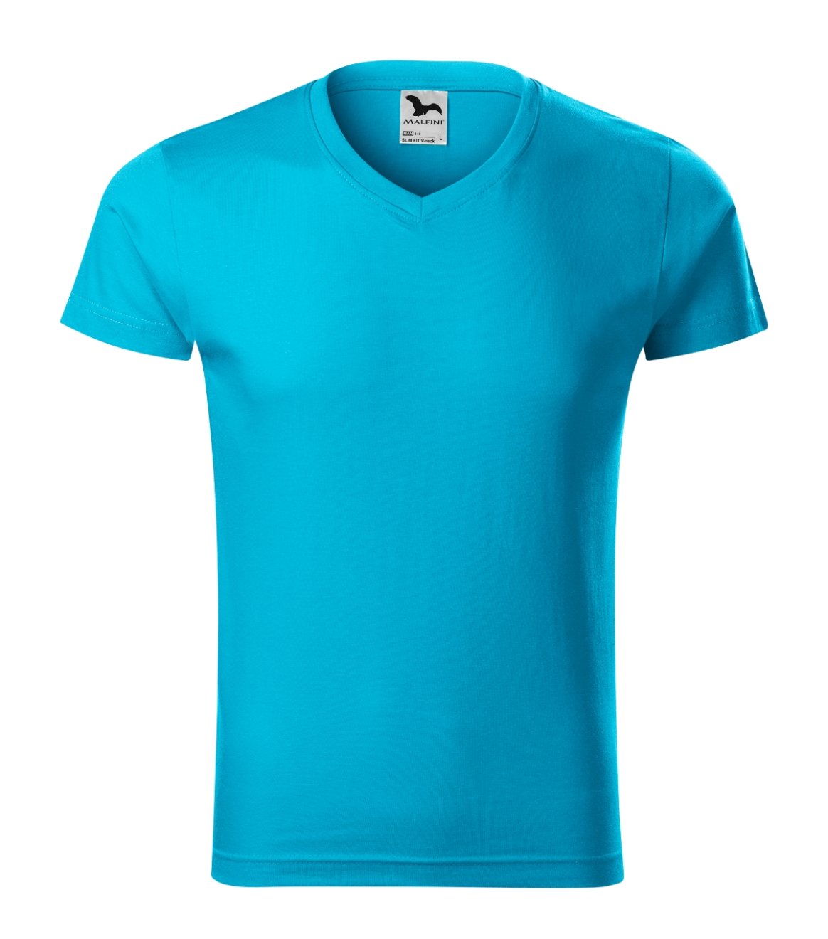 Tričko pánské Slim Fit V-neck 146 - M - tyrkysová