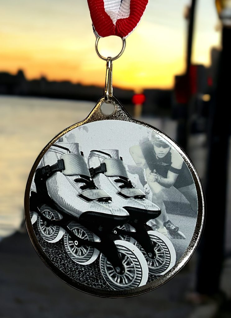 Kovová medaile s UVHQ potiskem a speciálním 3D lakem. Ceny medailí za 1 kus včetně stuhy.