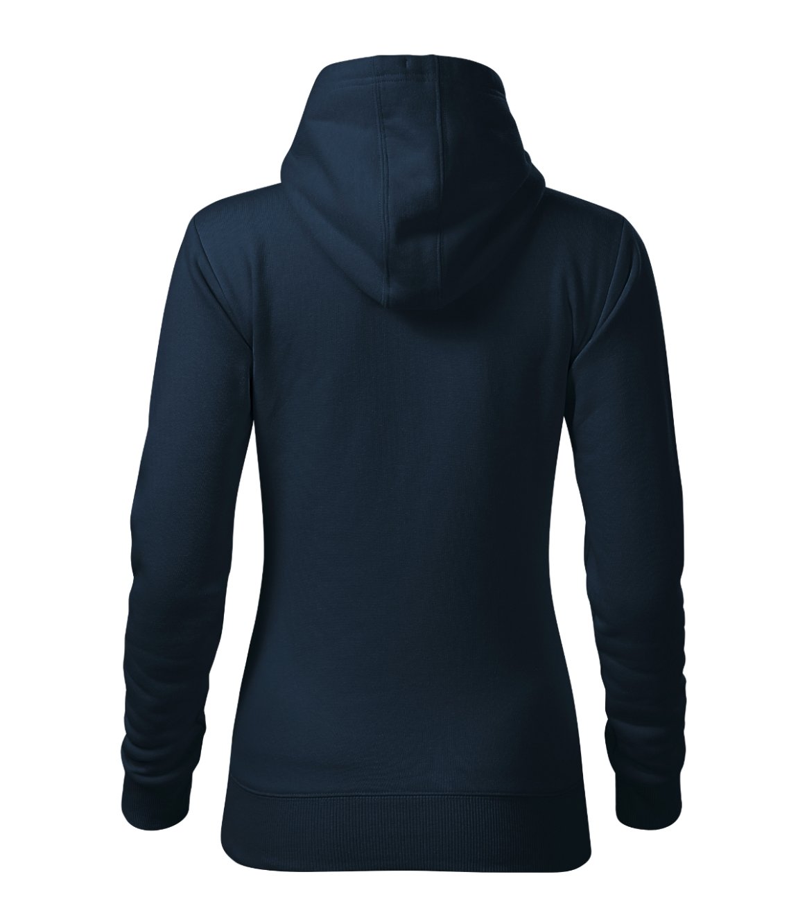 lehce vypasovaný střih s bočními švy, kapuce s podšívkou, na stažení šňůrkou, vnitřní část průkrčníku začištěna páskou v barvě vrchového materiálu, nakládaná kapsa ve stylu klokanky, dolní lem a manžety rukávů z žebrového úpletu 2:2 s 5 % elastanu, vnitřní strana počesaná