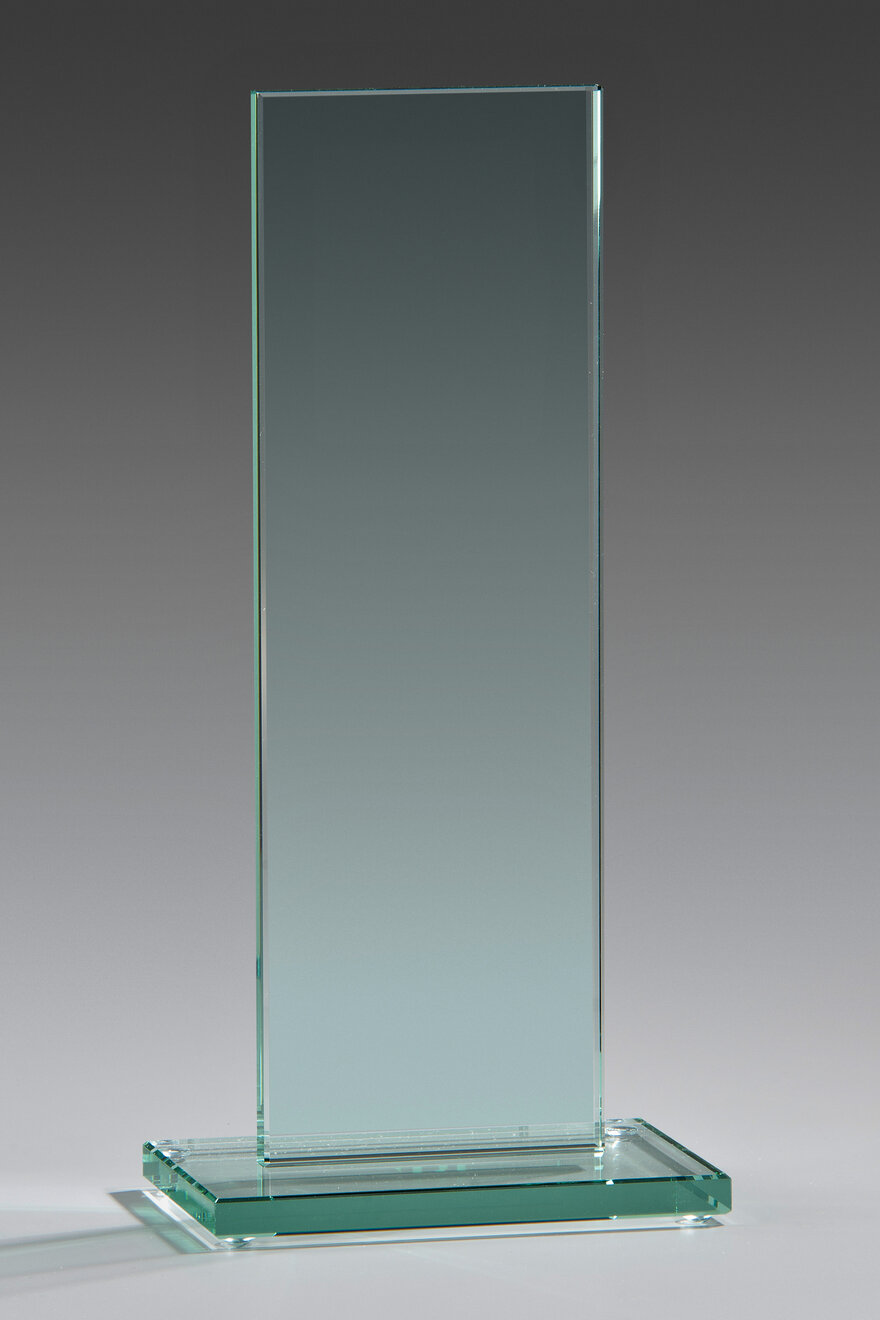 Trofej z 10 mm silného zeleného skla v pěti velikostech s velkým prostorem pro umístění dekoru.