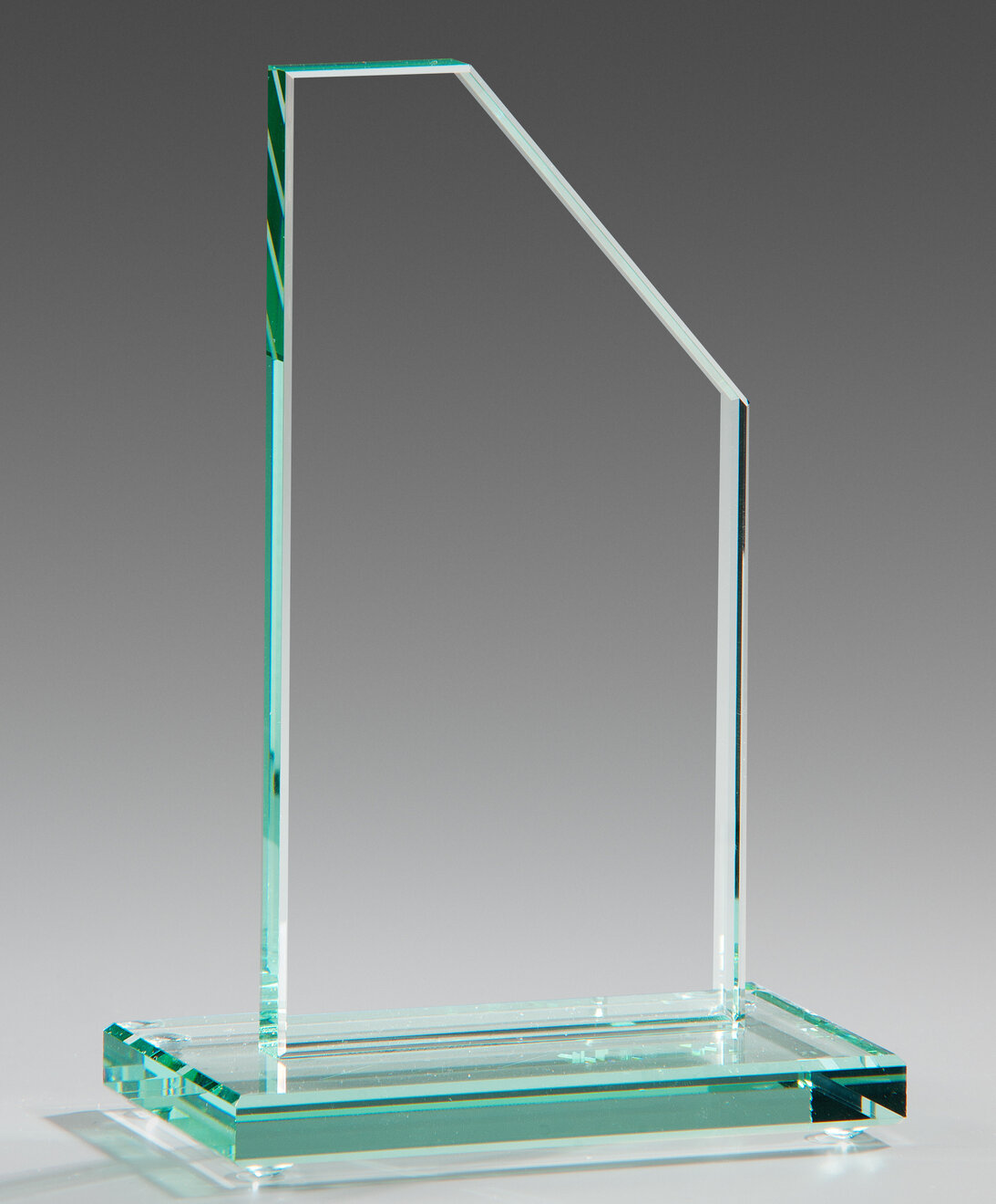 Trofej z 10 mm silného zeleného skla v pěti velikostech s velkým prostorem pro umístění dekoru.