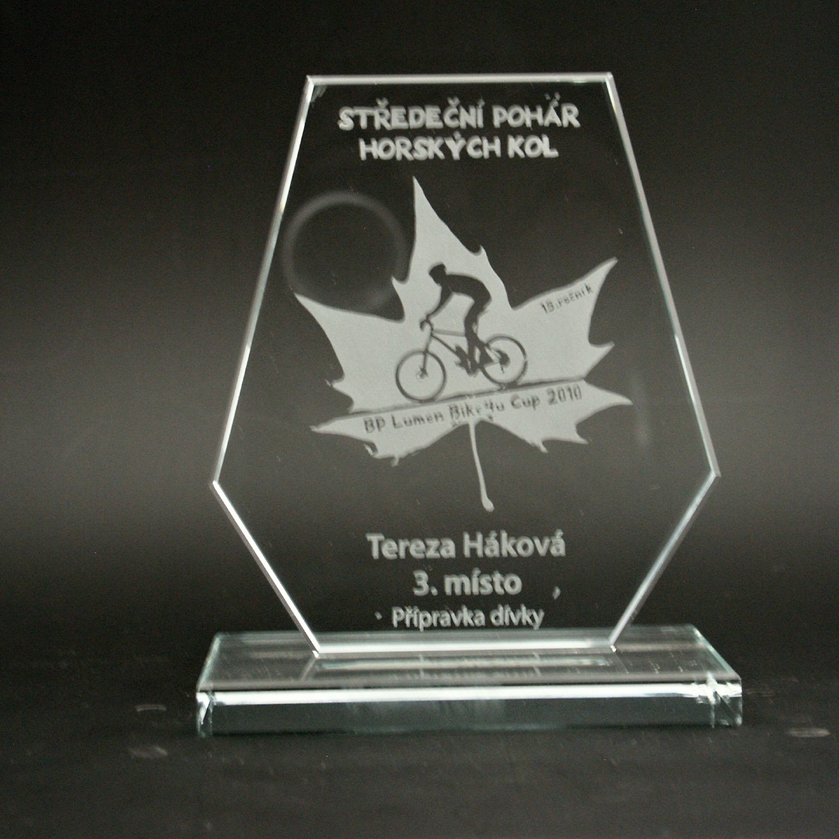 - Trofej z 12 mm silného bílého skla ve čtyřech velikostech s velkým prostorem pro umístění dekoru.