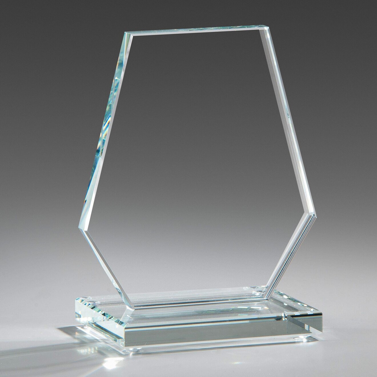Trofej z 12 mm silného bílého skla ve čtyřech velikostech s velkým prostorem pro umístění dekoru.