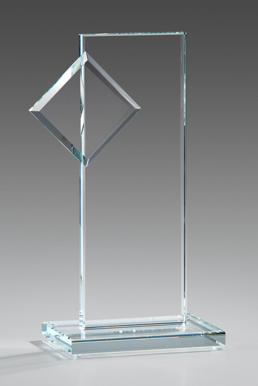 Trofej z 12 mm silného bílého skla ve čtyřech velikostech s velkým prostorem pro umístění dekoru.