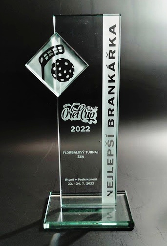 - Trofej z 12 mm silného bílého skla ve třech velikostech s velkým prostorem pro umístění dekoru.