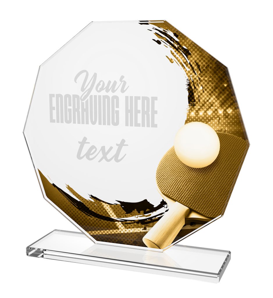 Skleněná trofej CR2024302M67 | Stolní Tenis Výška cm: 13, ZLATO