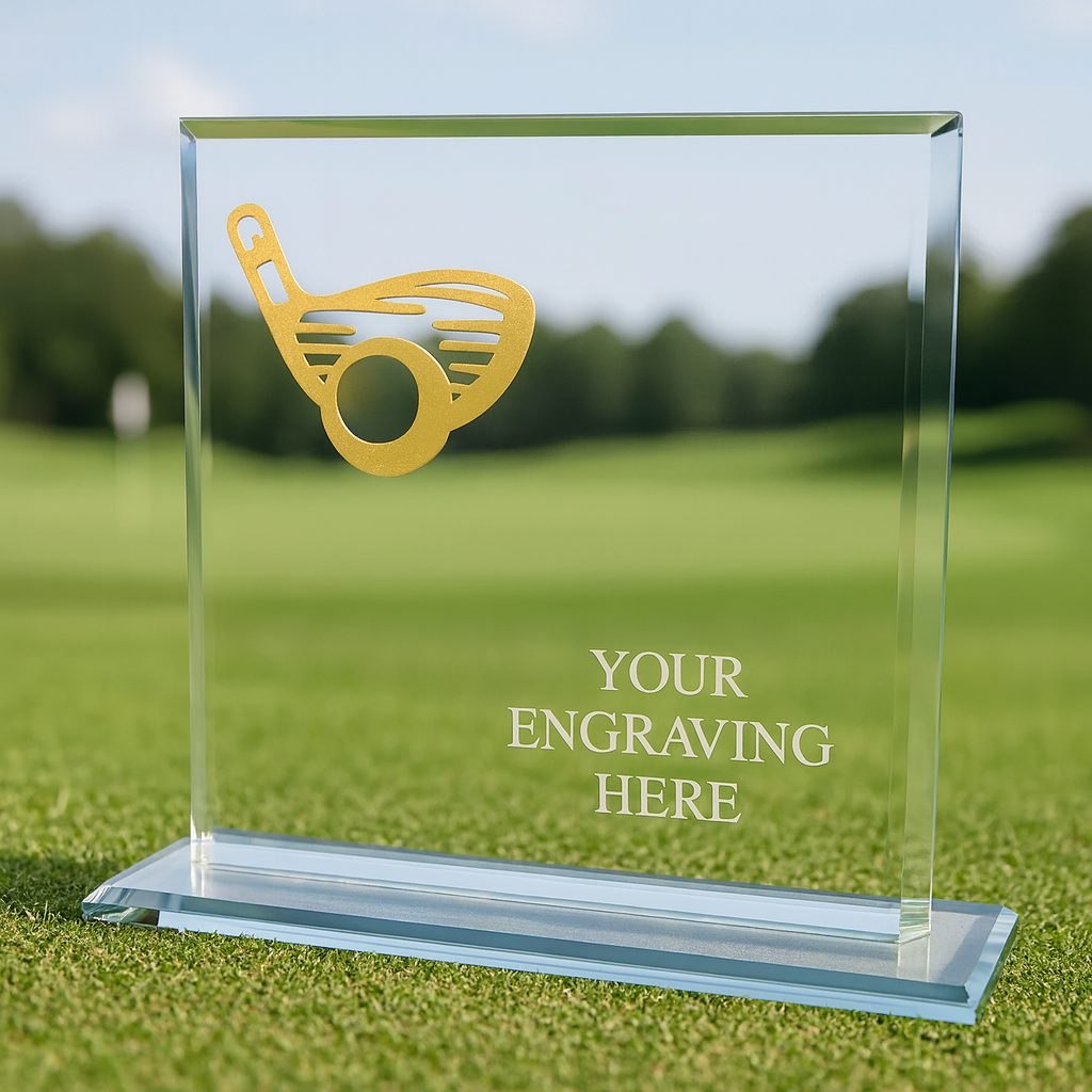 Skleněná trofej CRM20241M11 | Golf Výška cm: 17, Šířka cm: 17, Barva: Zlato