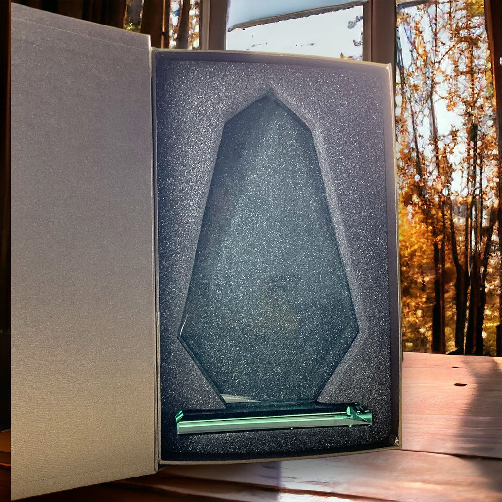 Skleněná trofej s UV HQ tiskem. Motiv v ceně. Možnost UV HQ tisku. Trofeje včetně dárkového balení.