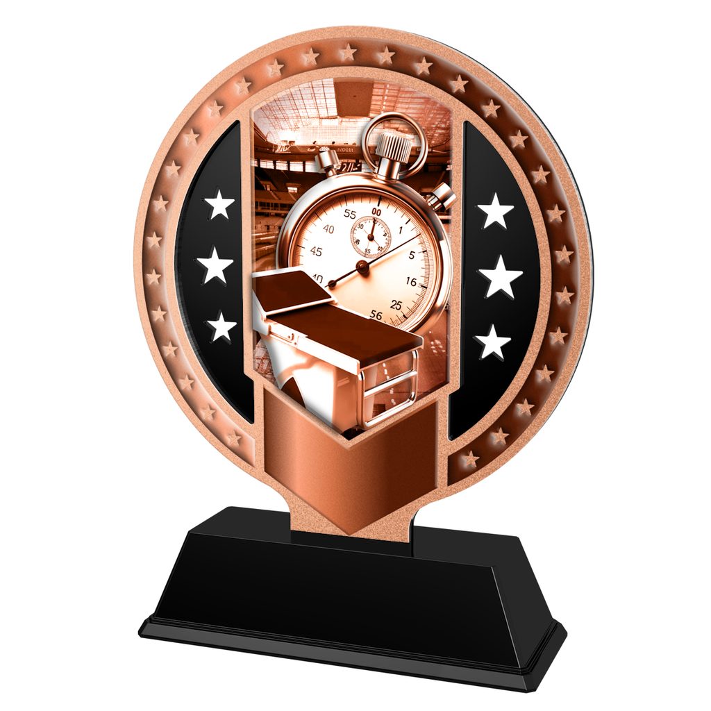 Elegantní kovová trofej kombinovaná s černým akrylátem. V ceně trofeje není zahrnuta cena štítku. Tloušťka trofeje je 0,4 cm. Podstavec je černý.