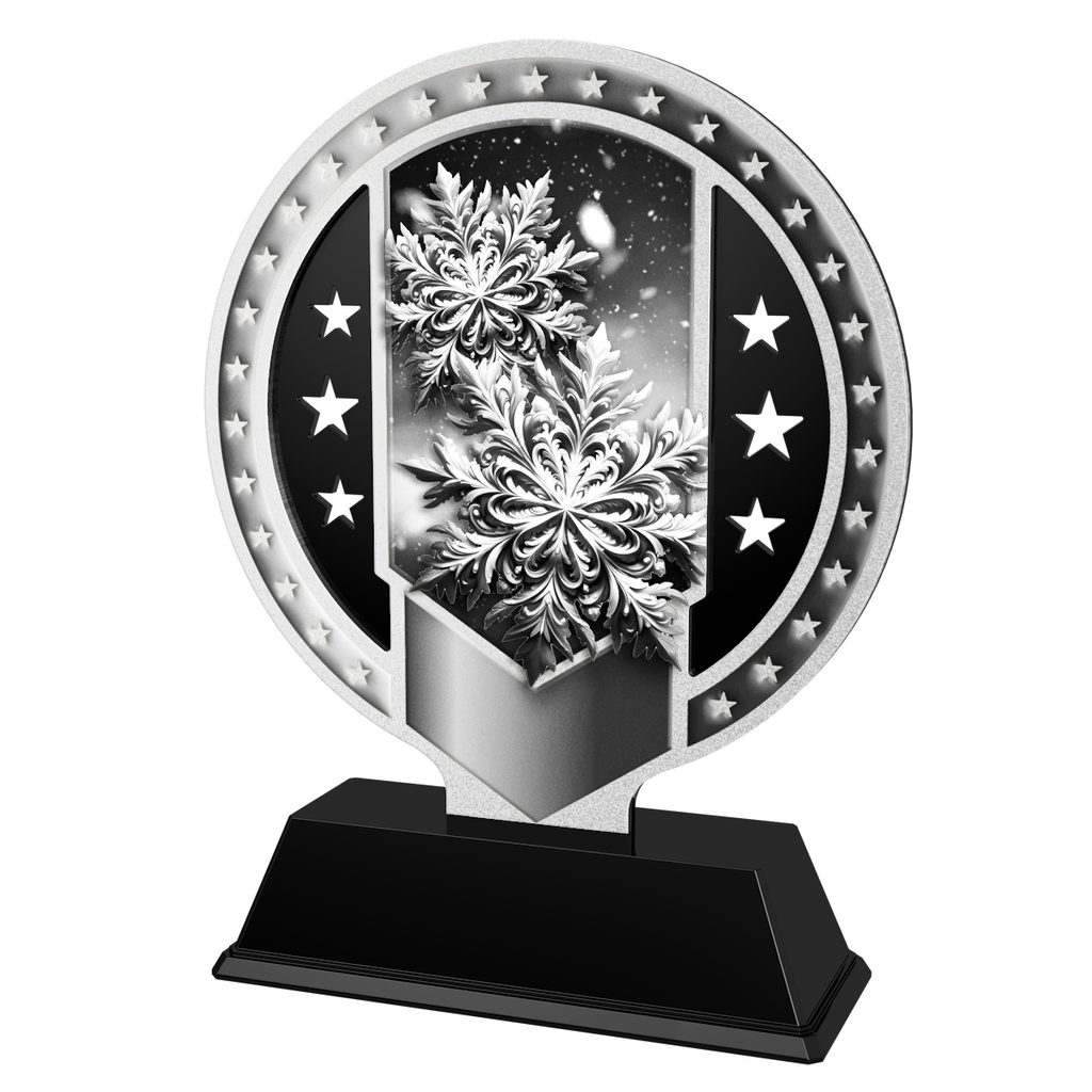 Elegantní kovová trofej kombinovaná s černým akrylátem. V ceně trofeje není zahrnuta cena štítku. Tloušťka trofeje je 0,4 cm. Podstavec je černý.