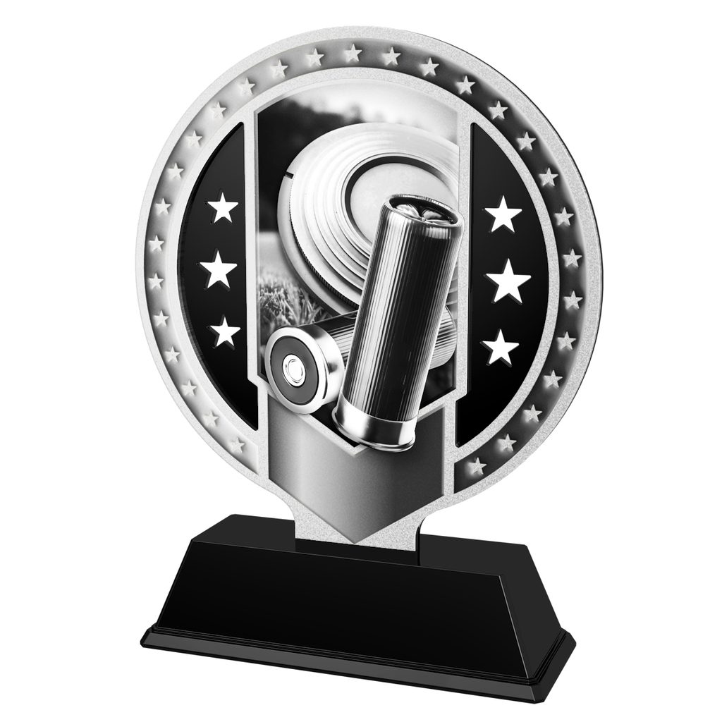Elegantní kovová trofej kombinovaná s černým akrylátem. V ceně trofeje není zahrnuta cena štítku. Tloušťka trofeje je 0,4 cm. Podstavec je černý.