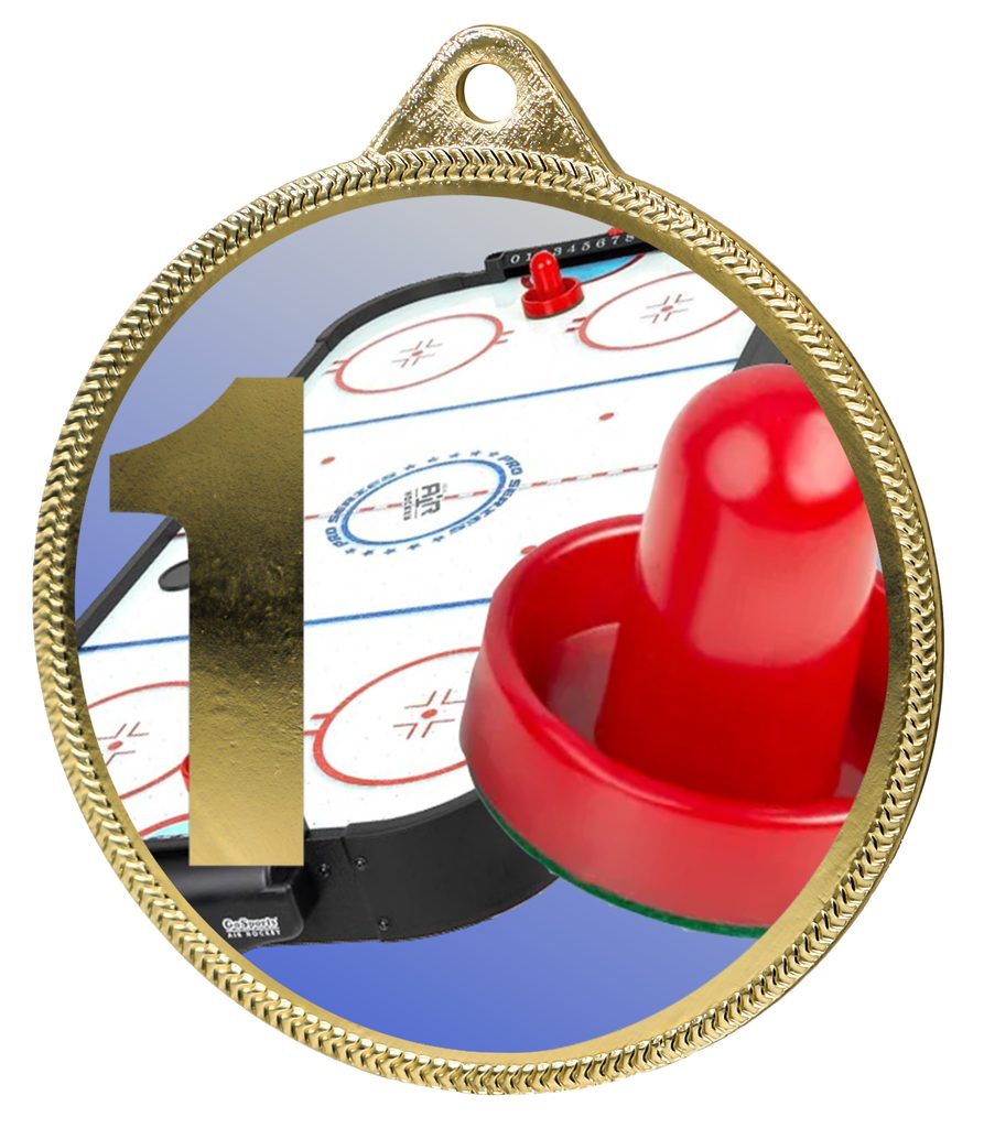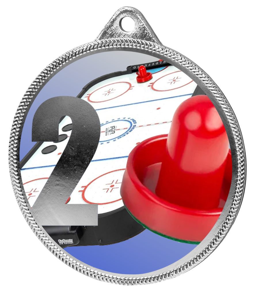 Medaile MDT0001M32 | Stolní hokej UV HQ tisk: cena s UV HQ tiskem, Barva: stříbro, Stuha: ST1