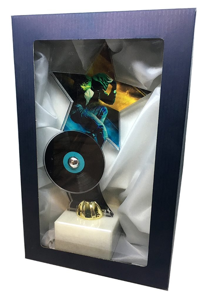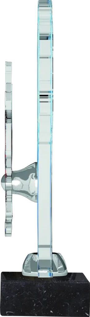Akrylátová trofej. V ceně trofeje není zahrnuta cena štítku. Akrylátový motiv 1 cm. Držák motivu A-zlato, B-stříbro, C-bronz (možno vyměnit). Podstavec bílý nebo černý. Výšky trofejí jsou orientační. Dárkové balení.