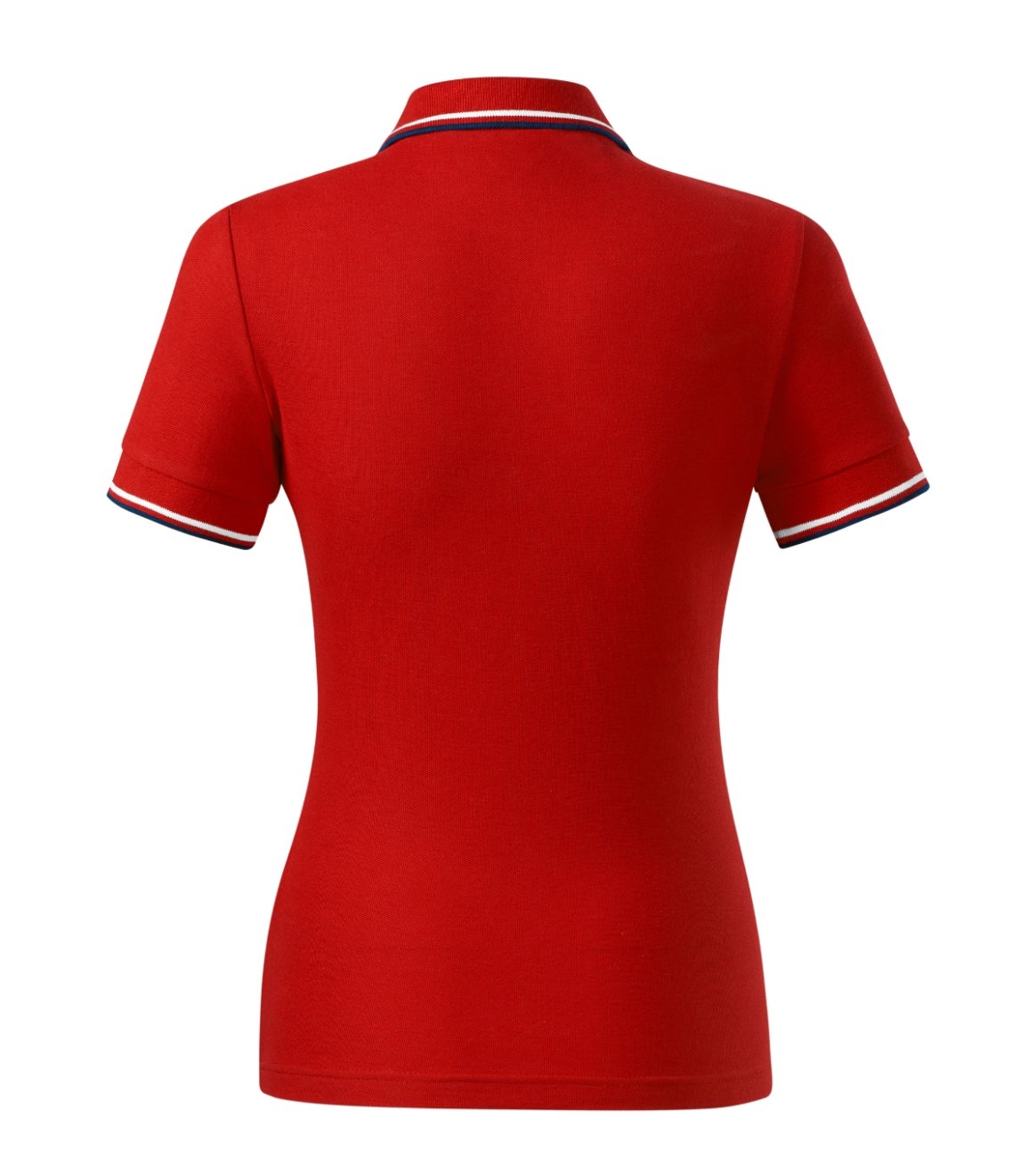 lehce vypasovaný střih s bočními švy, límeček z žebrového úpletu 1:1, 2 kontrastní proužky na rukávu a límečku , úzká léga s 4 knoflíčky v barvě materiálu, spodní knoflíček přišitý kontrastní nití, vnitřní průkrčník začištěn kontrastní páskou, zpevnění ramenních švů páskou, rozparky v bočních švech s kontrastní páskou