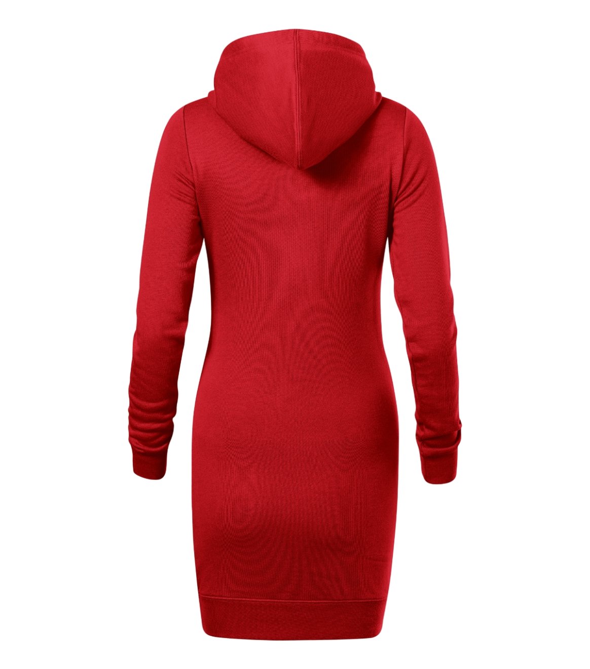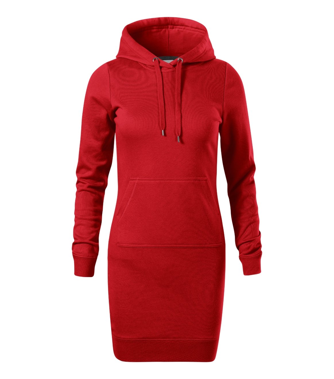 lehce vypasovaný střih s bočními švy, délka nad kolena, kapuce s podšívkou, na stažení šňůrkou, vnitřní část průkrčníku začištěna páskou v barvě 94, dolní lem a manžety rukávů z žebrového úpletu 1:1 s 5 % elastanu, nakládaná kapsa ve stylu klokanky, vnitřní strana nepočesaná