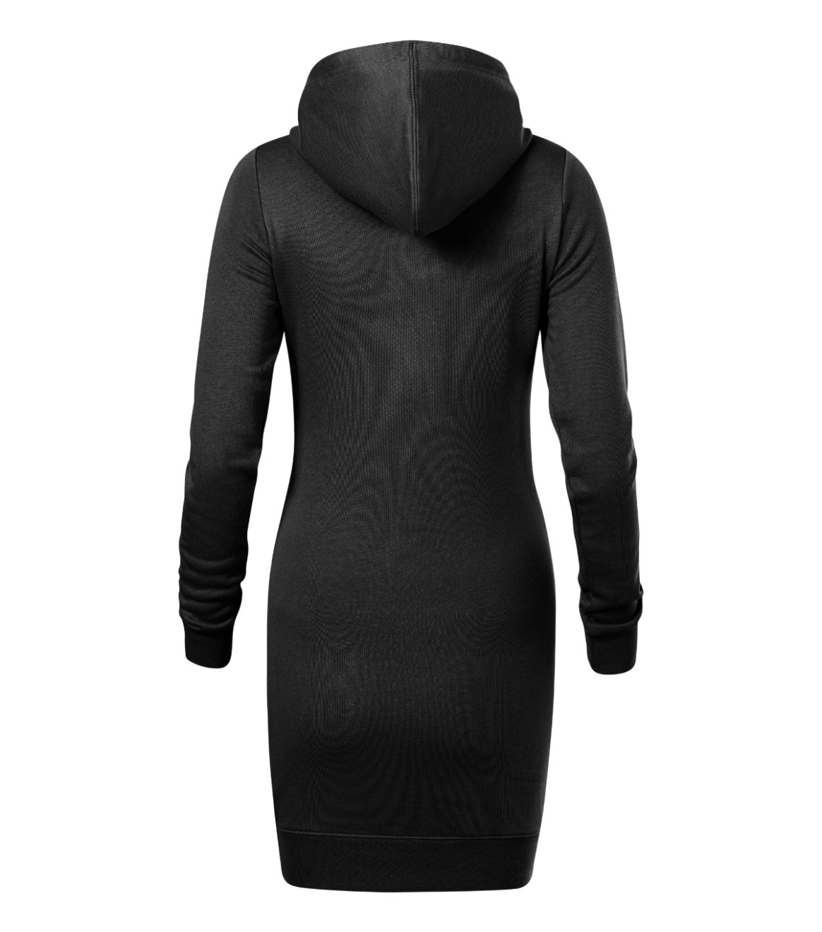 lehce vypasovaný střih s bočními švy, délka nad kolena, kapuce s podšívkou, na stažení šňůrkou, vnitřní část průkrčníku začištěna páskou v barvě 94, dolní lem a manžety rukávů z žebrového úpletu 1:1 s 5 % elastanu, nakládaná kapsa ve stylu klokanky, vnitřní strana nepočesaná