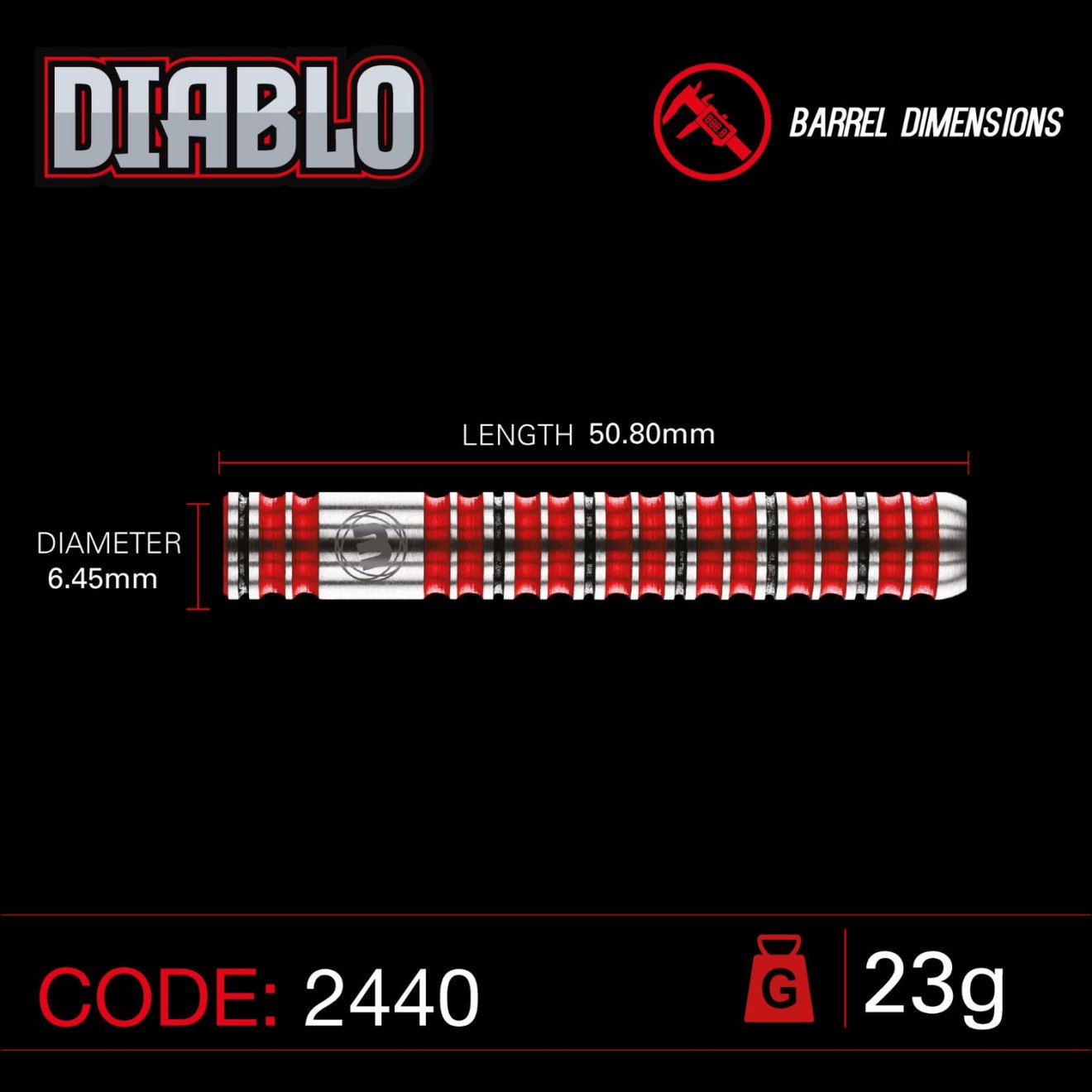 Steelové šipky Winmau Diablo jsou wolframové šipky (90% tungsten) s barrely, které mají červené drážkování a zdobí je logo Winmau.