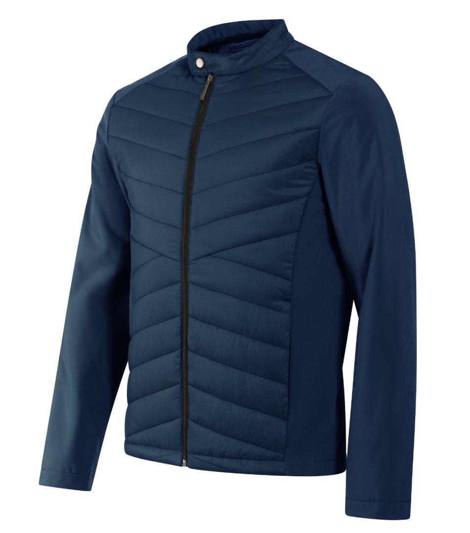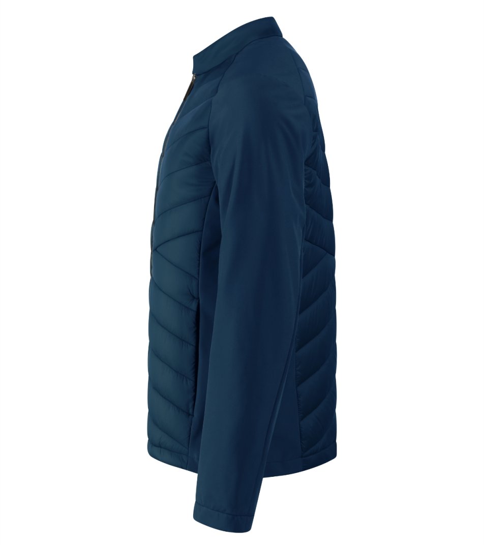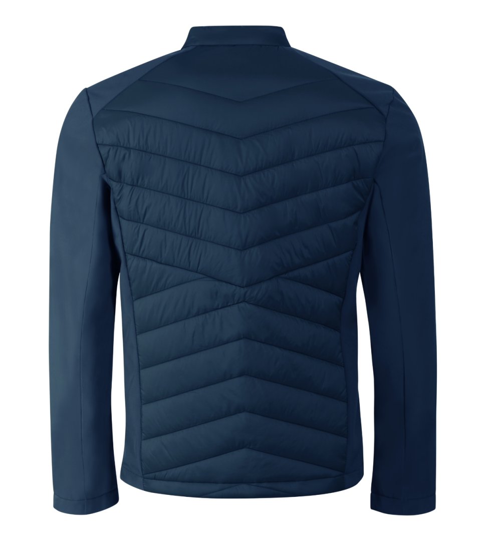 kombinace prošívaného a softshellového materiálu, rovný střih s bočními díly, stojáček na druk, celopropínací spirálový zip , boční kapsy se spirálovým zipem, vnitřní náprsní kapsa na zip, vstup pro branding v podšívce zadního dílu