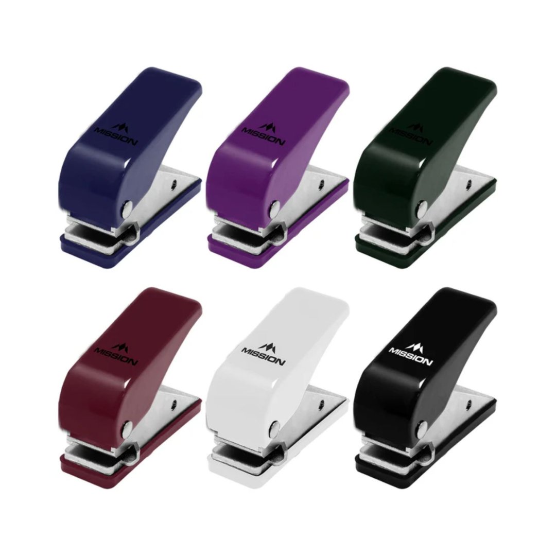 Mission Flight Punch je velice praktická pomůcka pro vysekávání děr do letek všech tvarů a velikostí. Po vyseknutí dírky se nasadí kroužek nylonové násadky do letky a letka se pak nasadí na nylonovou násadku a vše výborně drží a neuvolňuje se.