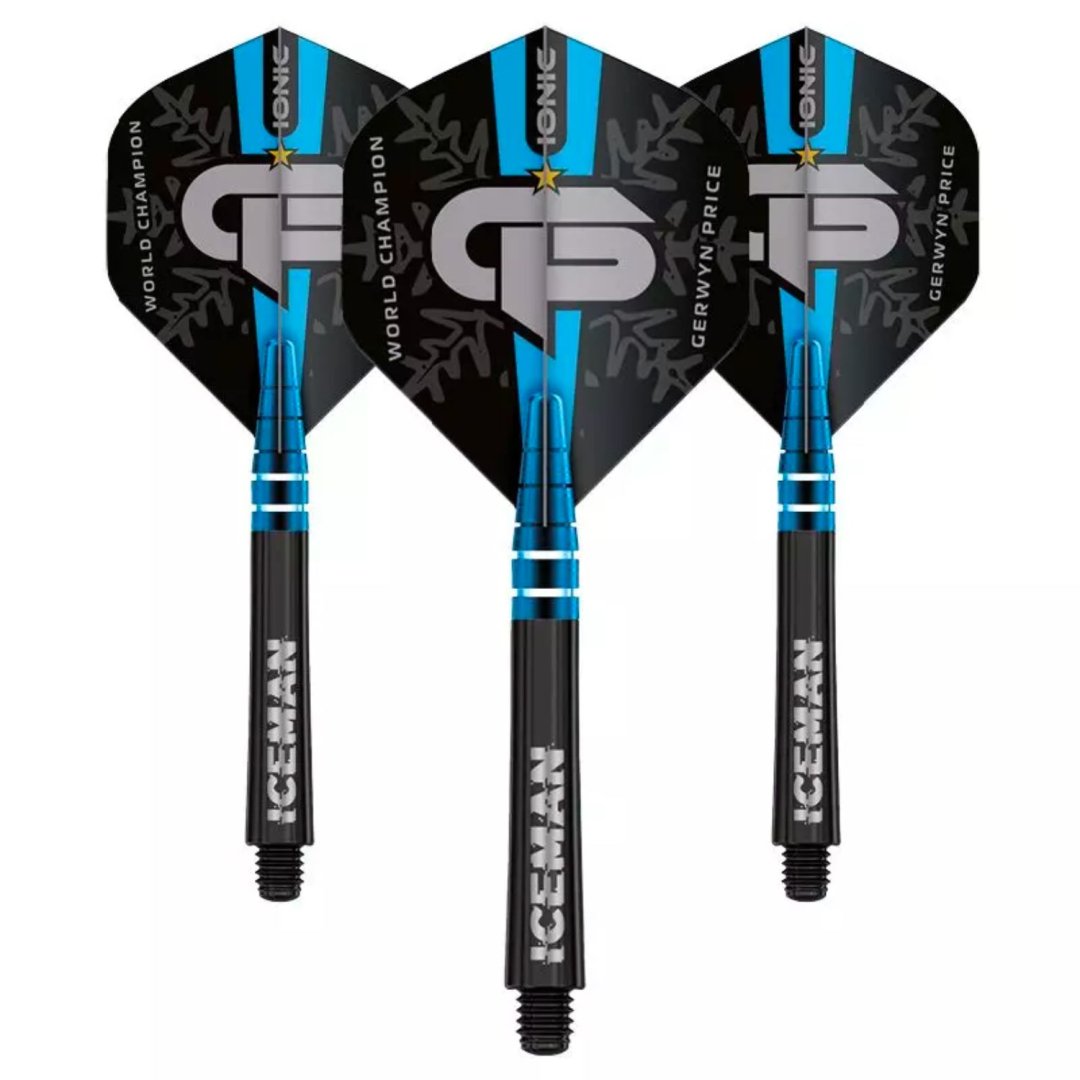 Sada letek a násadek Gerwyn Price Iceman Combo obsahuje 2 sady (tj. 6 kusů) polykarbonátových násadek Nitrotech medium a 2 sady letek (tj. 6 kusů) Hardcore Ionic Gerwyn Price.