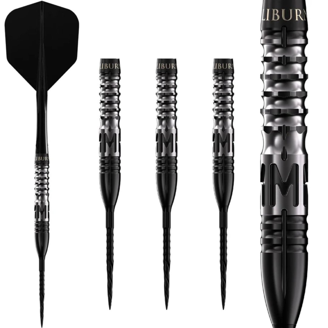 Steelové šipky Caliburn Player - Mak jsou wolframové šipky (95% tungsten) s černými barrely v úchvatném designu.