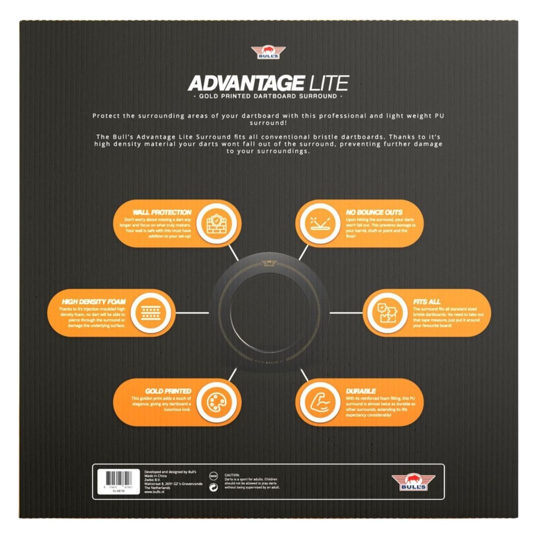 Účinná ochrana stěn: Bull's Advantage Lite Gold Surround je vyroben z vysoce kvalitního odolného materiálu, který absorbuje nárazy šipek a zabraňuje poškození stěn.