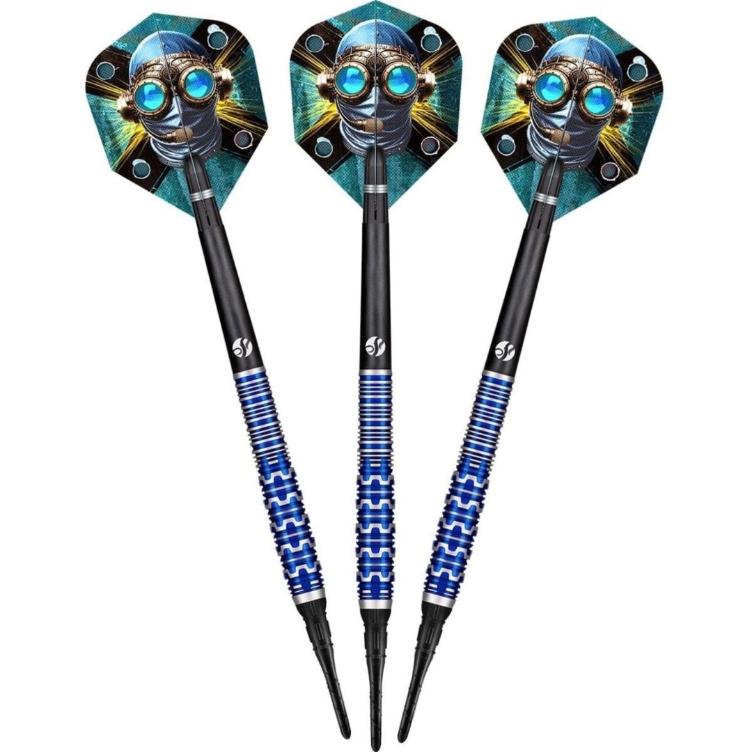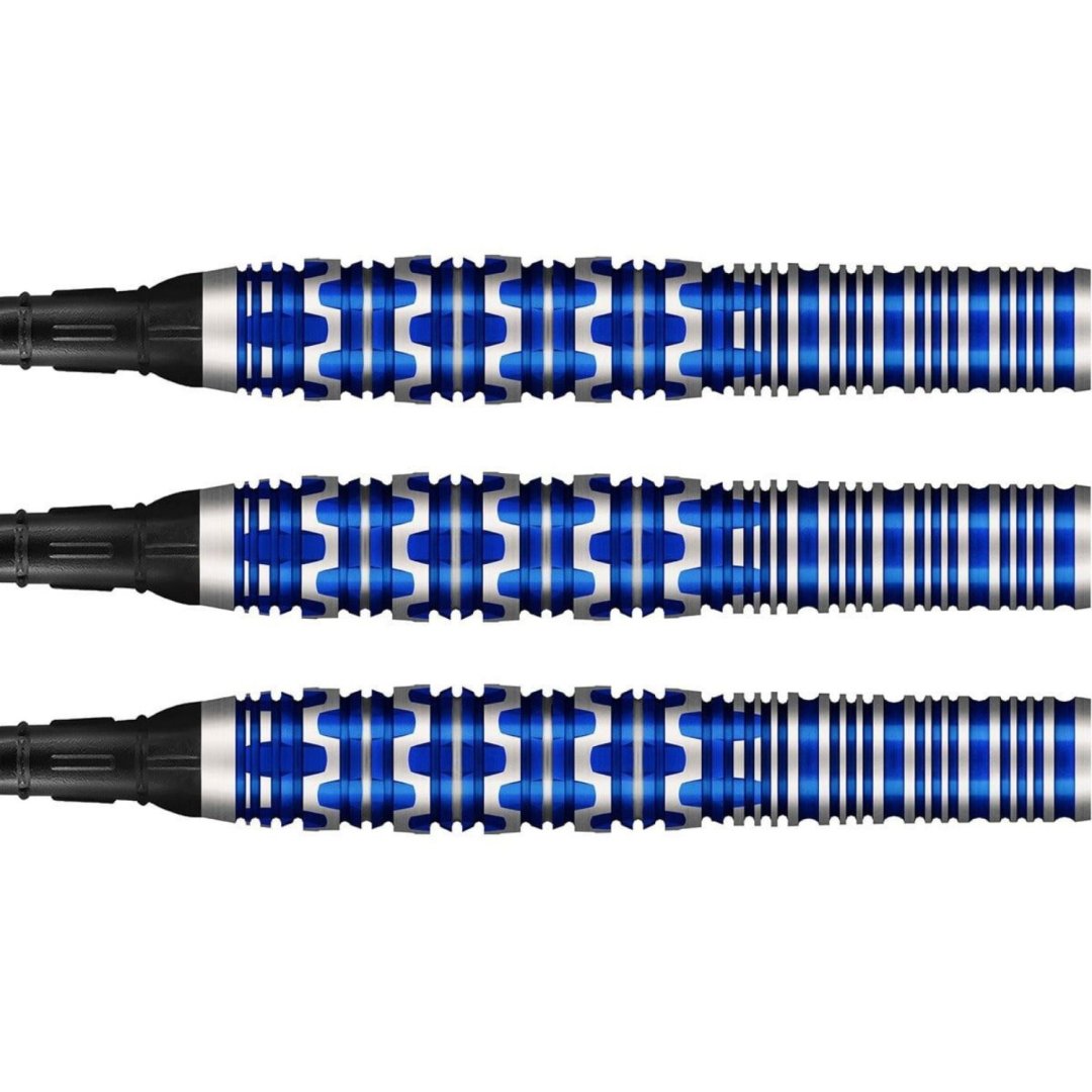 Softové šipky Shot Badlands Tova jsou wolframové šipky (90% tungsten) s barrely v jedinečném designu. Drážkování je zvýrazněno modrou barvou.