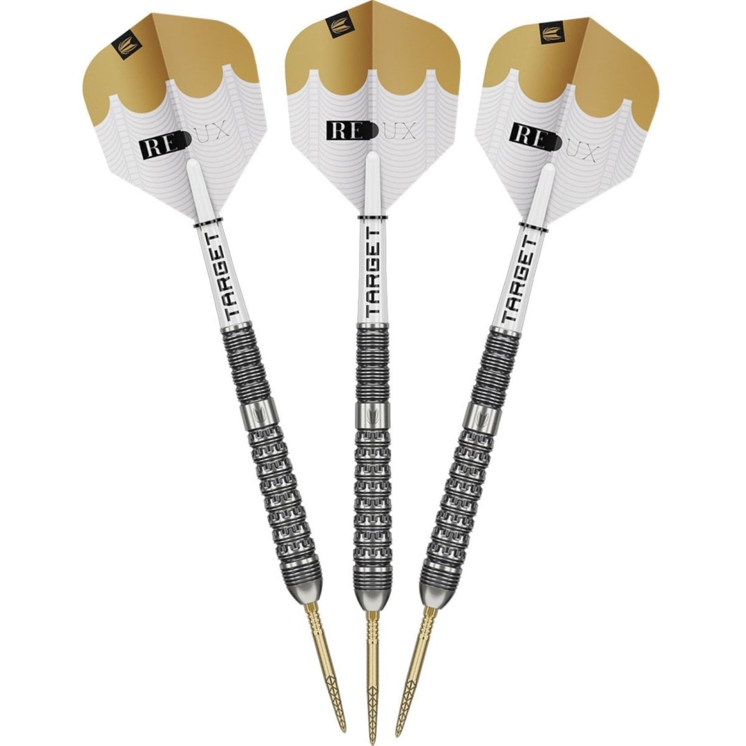 Steelové šipky Target Redux jsou jedinečné wolframové šipky (90 % tungsten) s barrely v úchvatném designu. Barrely jsou doplněny nylonovými násadkami, letkami Redux a hroty Swiss Point. Součástí balení je i nástroj na výměnu hrotů Swiss Point.