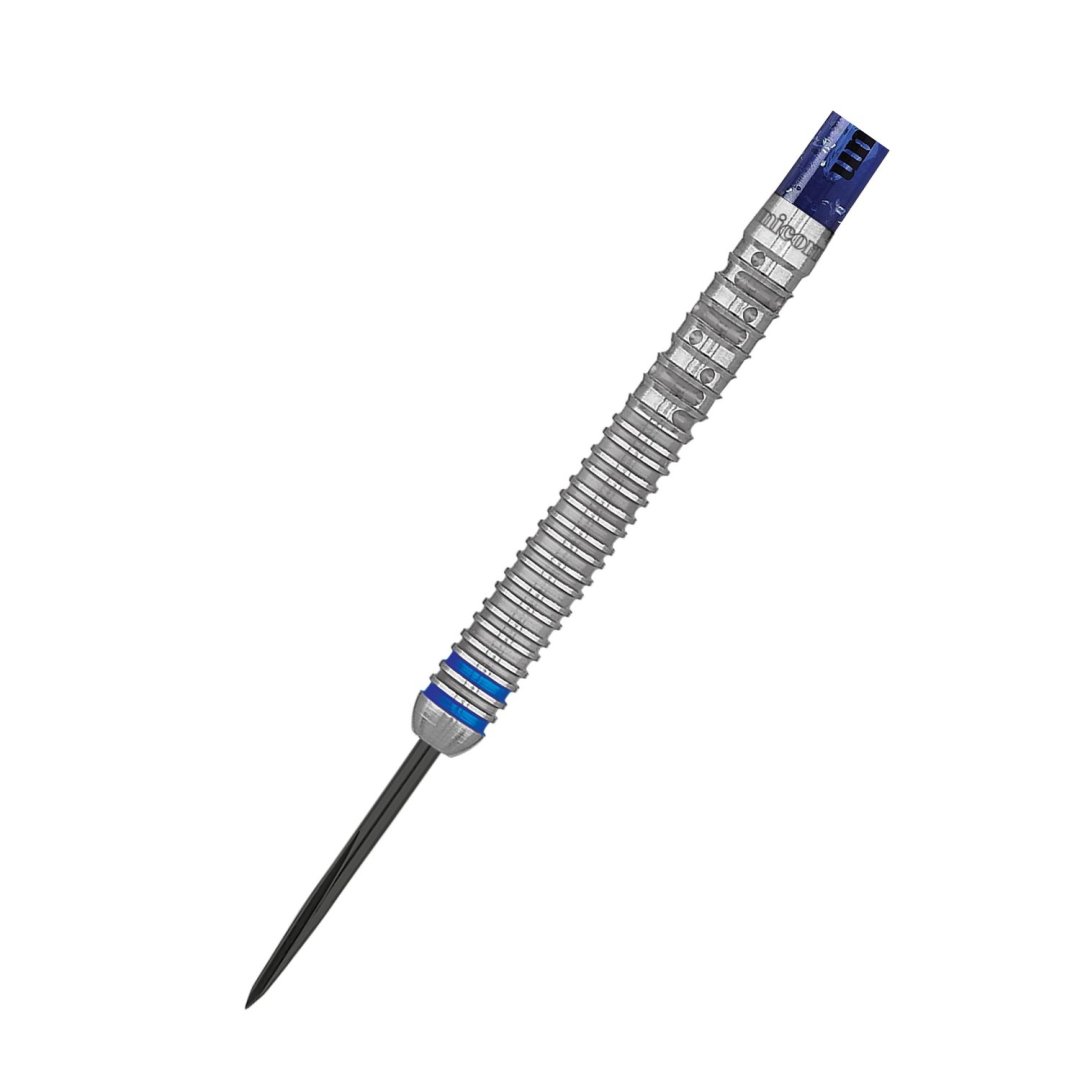 Steelové wolframové šipky (90% tungsten) s barrely, které jsou vroubkované po celé délce a na začátku se vyjímají dva modré proužky.