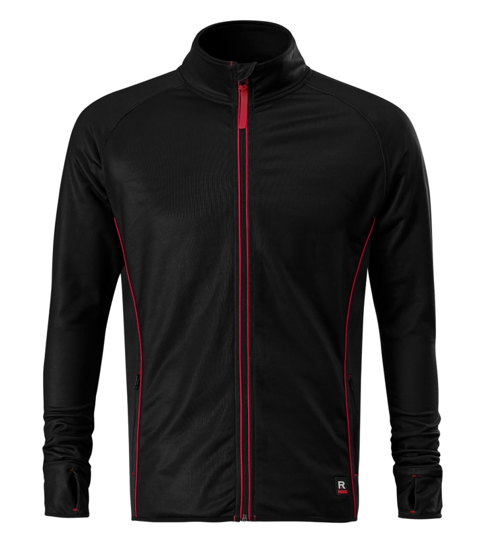 hladký strečový rychleschnoucí materiál, rovný střih s bočními švy, celopropínací reverzní spirálový zip s krytkou brady, vnitřní průkrčník začištěn páskou , raglánové rukávy, manžety s otvorem pro palec, kapsy na zip, lemování elastickým proužkem, kontrastní prvky, poutko na zavěšení