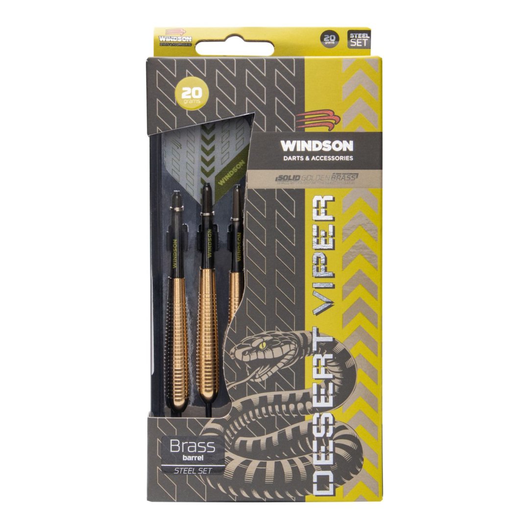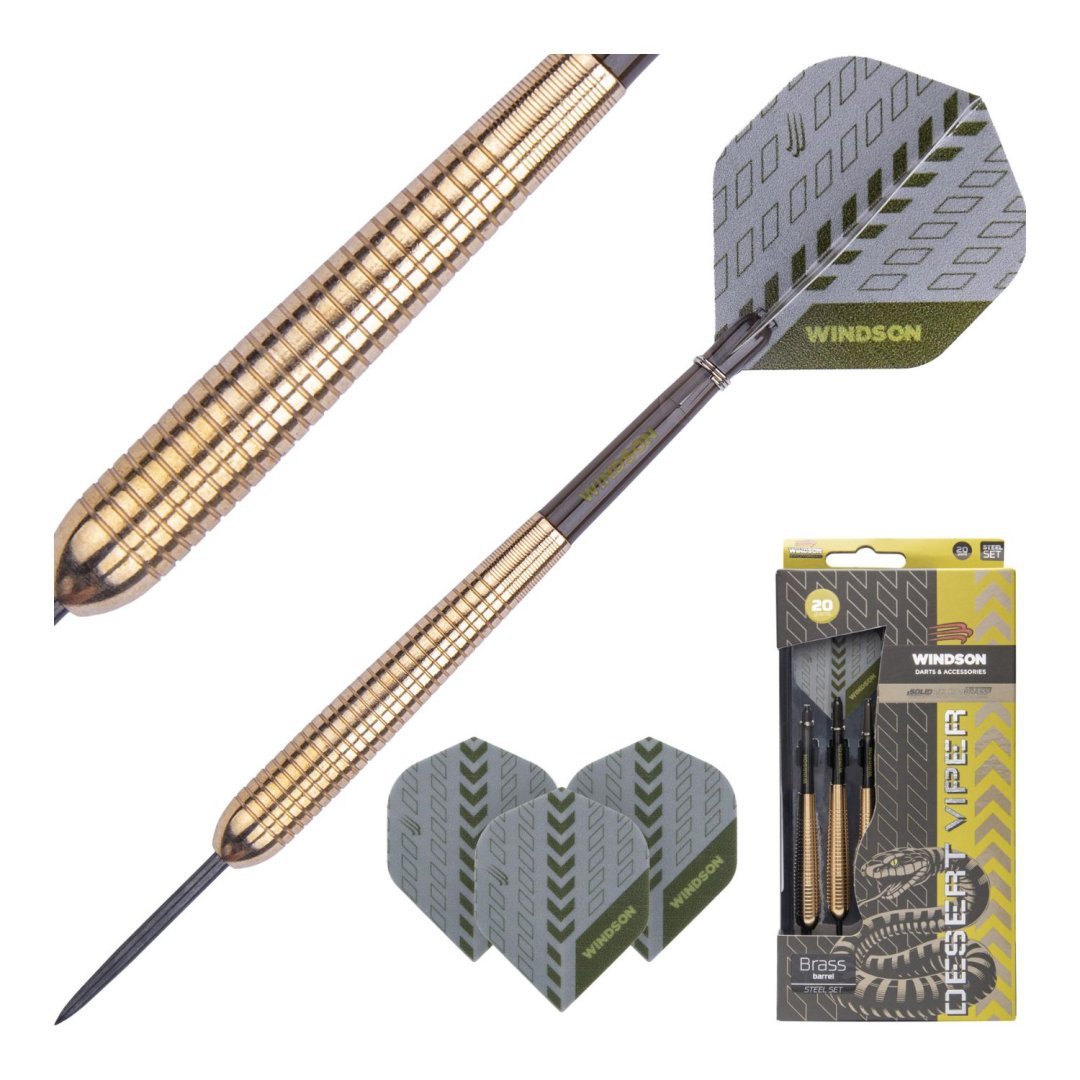 Steelové šipky Windson Desert Viper jsou mosazné šipky se zlatými barrely. Barrely jsou doplněny nylonovými násadkami a letkami Windson.