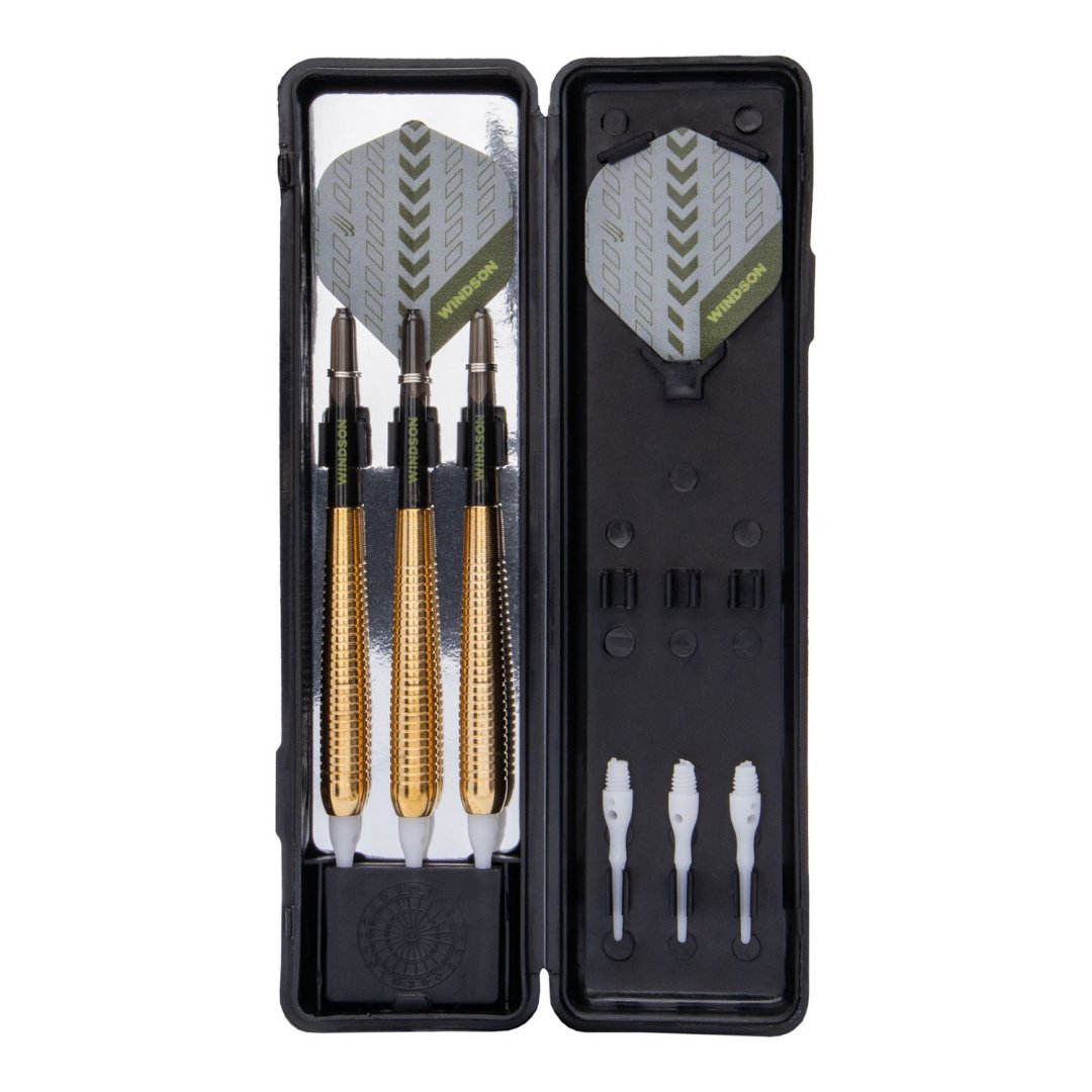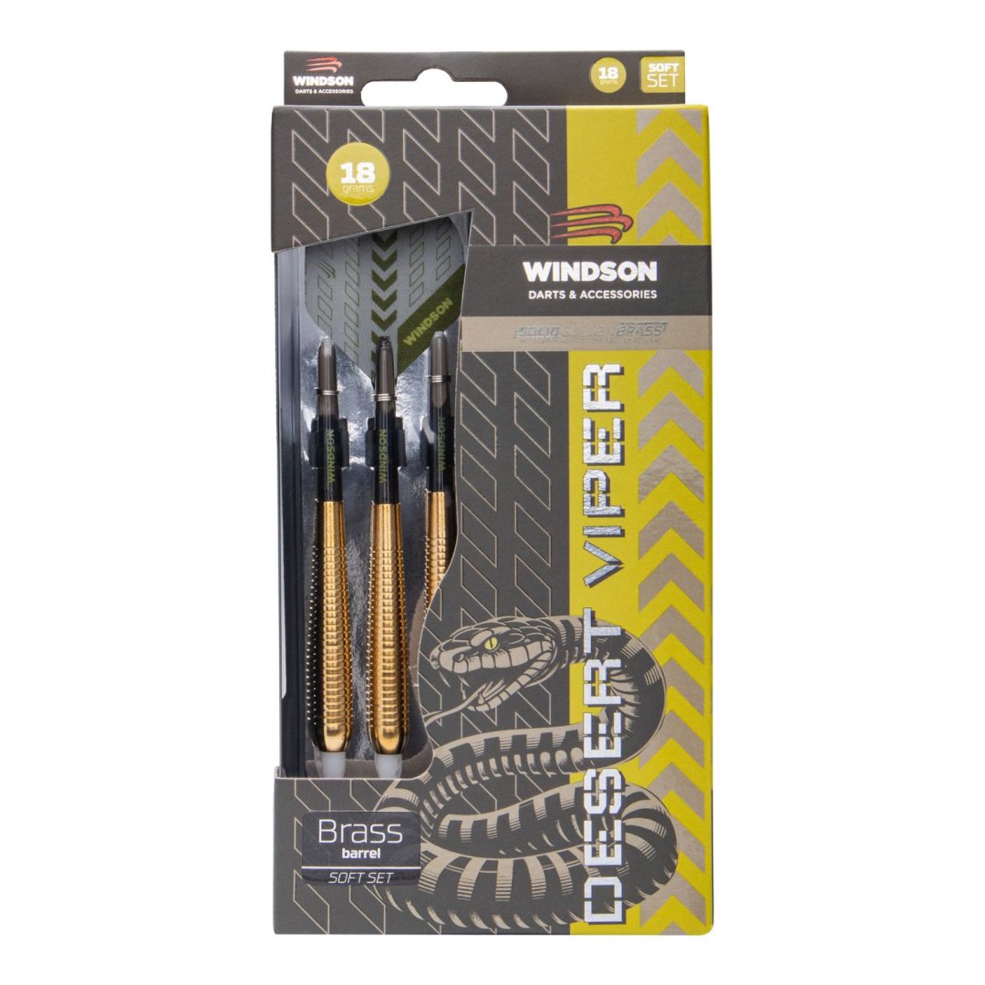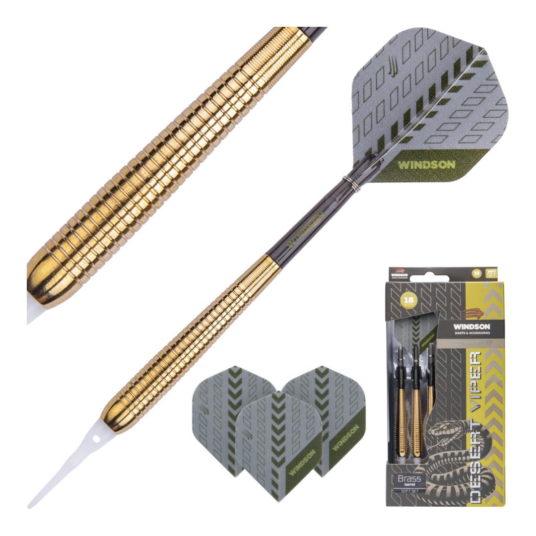 Softové šipky Windson Desert Viper jsou mosazné šipky se zlatými barrely. Barrely jsou doplněny nylonovými násadkami a letkami Windson.