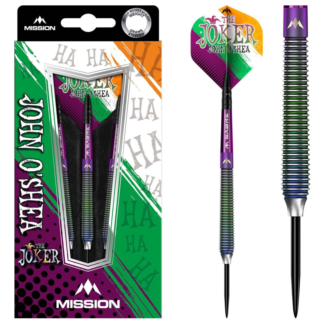 Steelové šipky Mission John O Shea "The Joker" jsou wolframové šipky (95% tungsten) s drážkovanými barrely, které jsou potažené povlakem Coral Titanium Nitrid PVD, který při pohybu zdánlivě mění barvu.