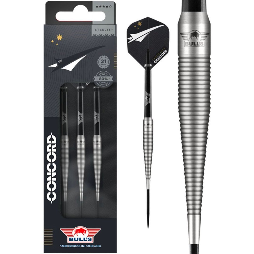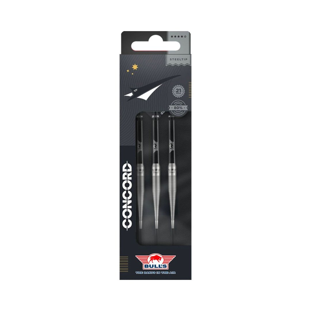 Steelové šipky Concord jsou wolframové šipky (80% tungsten), které mají vroubkované barrely s výjimečným tvarem - směrem dopředu se zužují a plynule přecházejí v kovový hrot. Jsou doplněny nylonovými násadkami a letkami Concord.