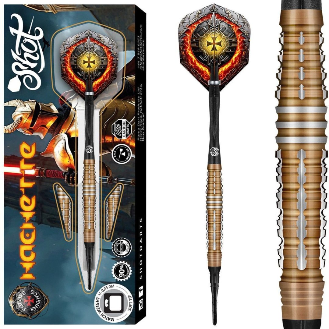 Softové šipky Shot Future Knights Hachette jsou wolframové šipky (90% tungsten) v úchvatném designu.