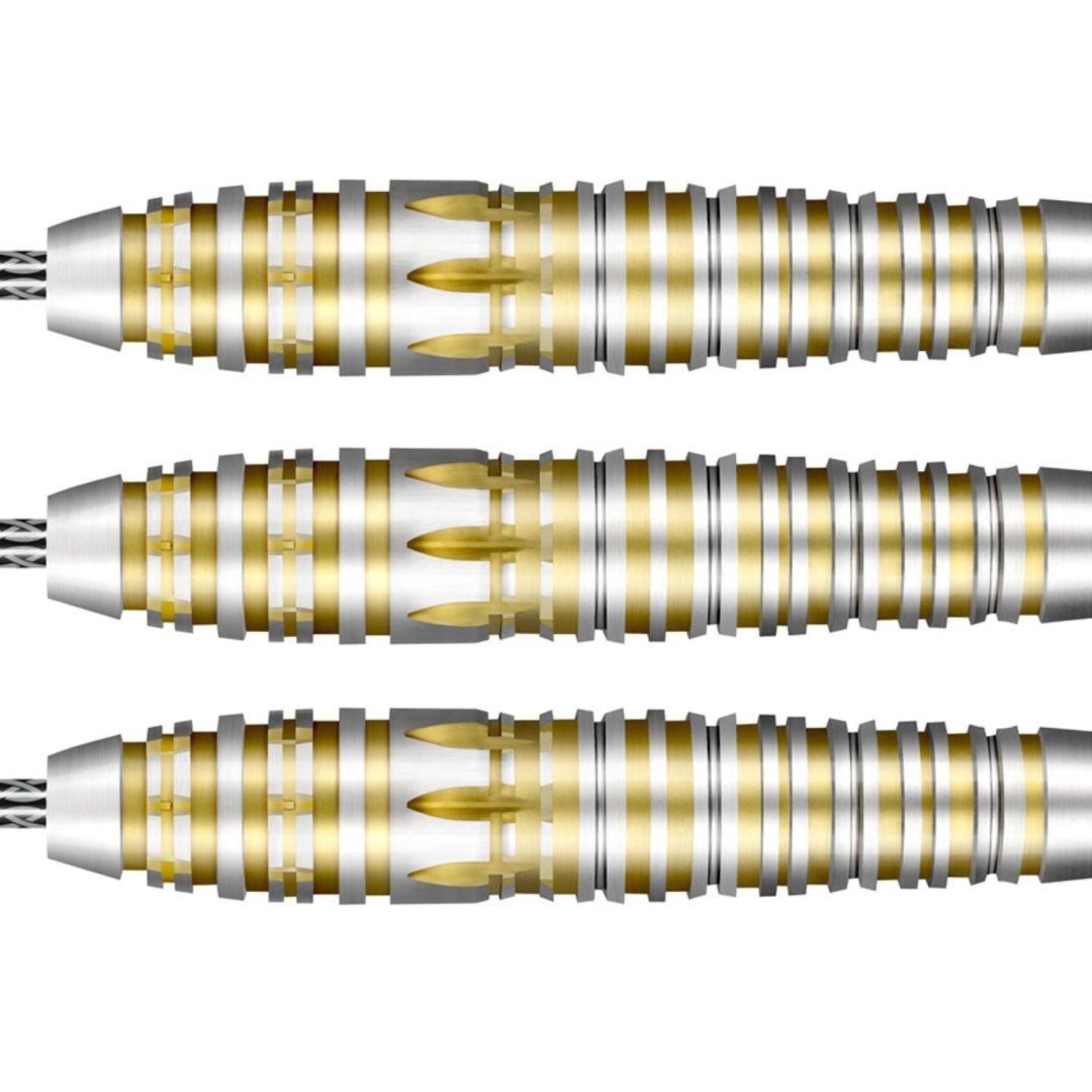 Steelové šipky Shot Celt Balor jsou wolframové šipky (90% tungsten) s barrely se zlatým drážkováním v jedinečném designu.