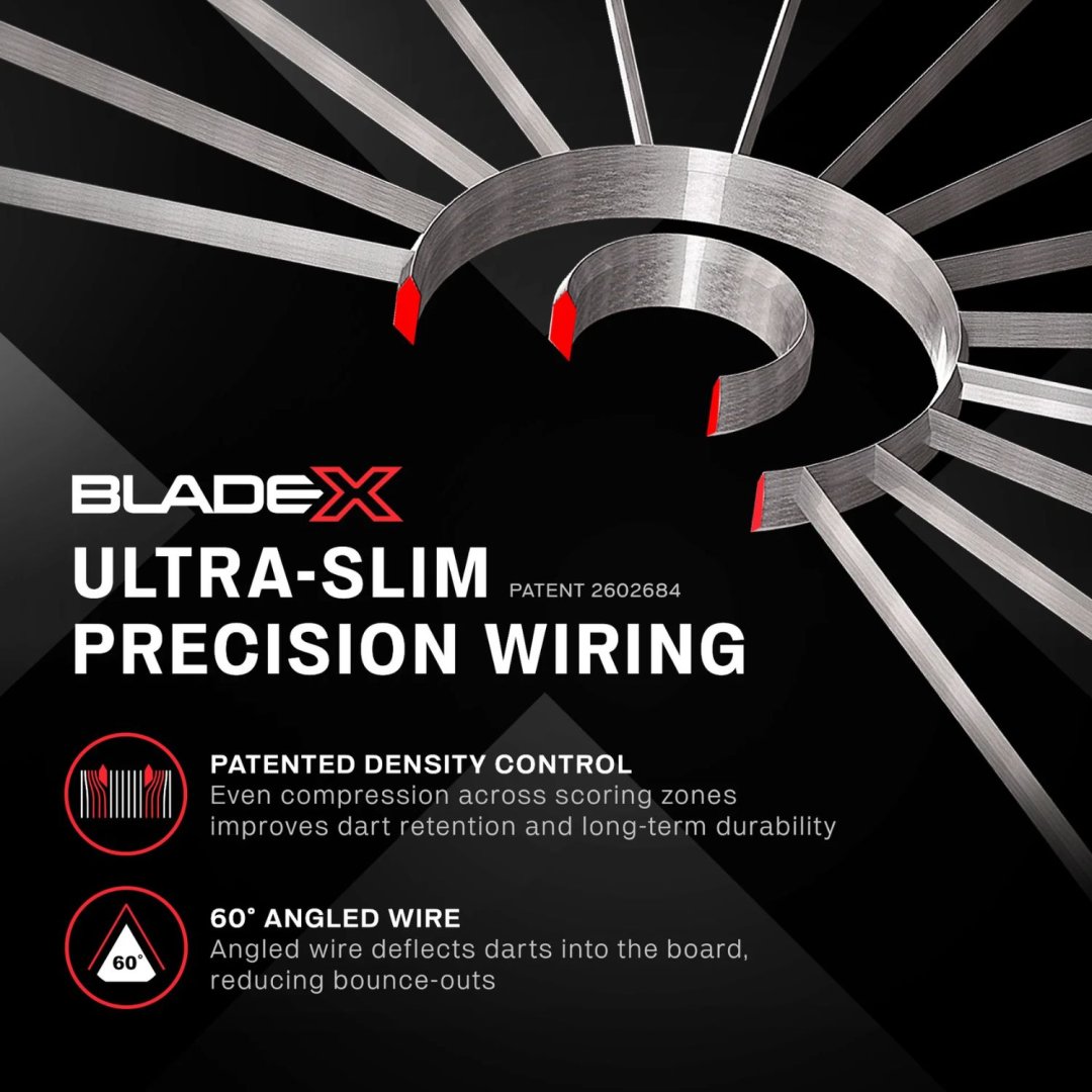 - Dokonalé samoléčivé vlastnosti - Blade X nabízí výjimečné samoléčivé vlastnosti, které zachovávají původní povrch terče a výrazně prodlužují jeho životnost. Blade X je navržen tak, aby odolal náročným soutěžím na nejvyšší úrovni, a je důkladně testován nejlepšími profesionály na světě.