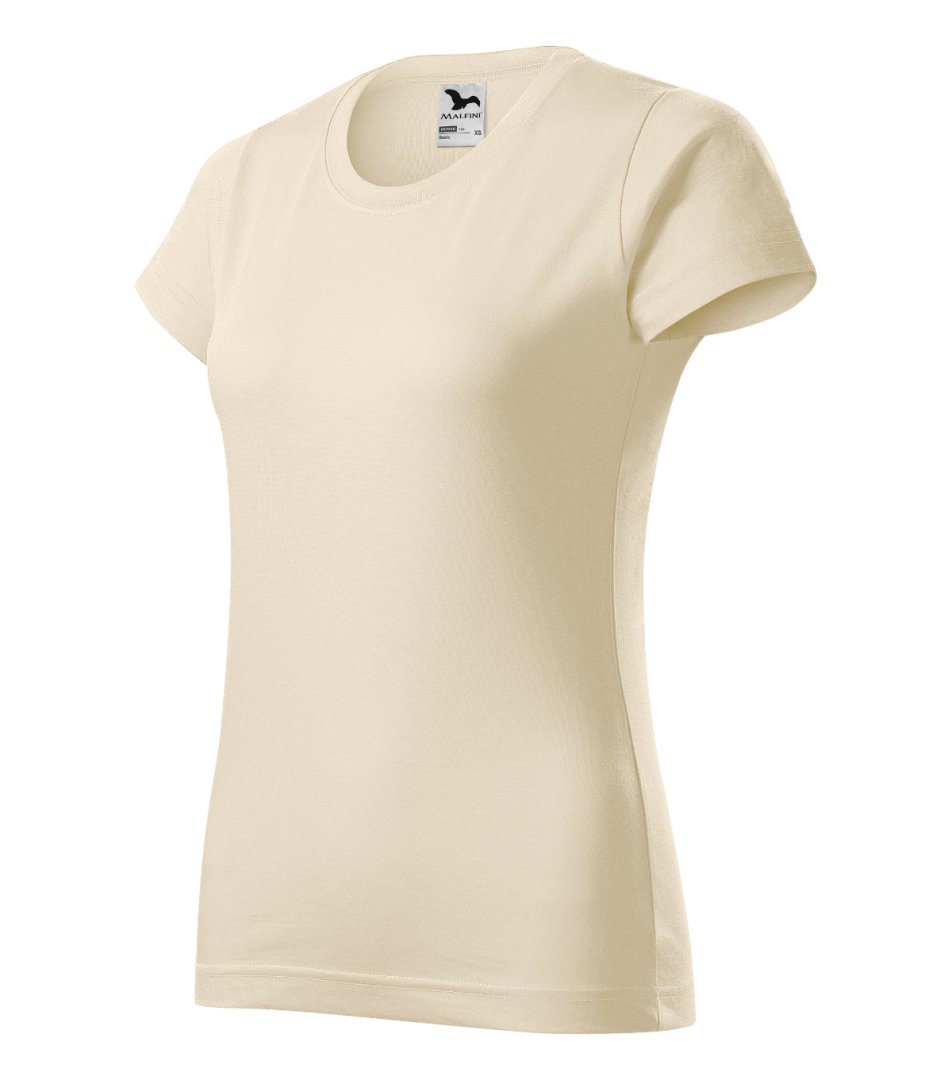 lehce vypasovaný střih s bočními švy, úzký lem průkrčníku z žebrového úpletu 1:1 s 5 % elastanu, vnitřní část průkrčníku začištěna páskou z vrchového materiálu, zpevnění ramenních švů páskou, silikonová úprava