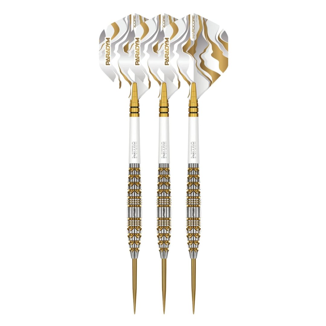 Steelové šipky Red Dragon Paradym Gold jsou wolframové šipky (90% tungsten) v dokonalém designu. Barrely mají jedinečné drážkování zvýrazněné zlatou barvou, což šipce dodává luxusní nádech. Barrely jsou doplněny násadkami Nitrotech a letkami Hardcore Paradym Gold.