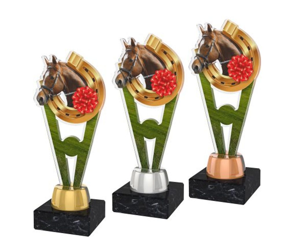 Akrylátová trofej ACUTMINIM12 | Jezdectví Výška cm: 15, Barva: stříbro, Podstavec: bílý