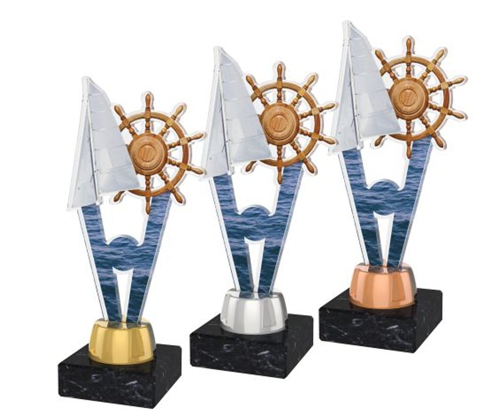 Akrylátová trofej. V ceně trofeje není zahrnuta cena štítku. Akrylátový motiv 0.6 cm. Držák motivu A-zlato, B-stříbro, C-bronz (možno vyměnit). Podstavec bílý nebo černý. Výšky trofejí jsou orientační.
