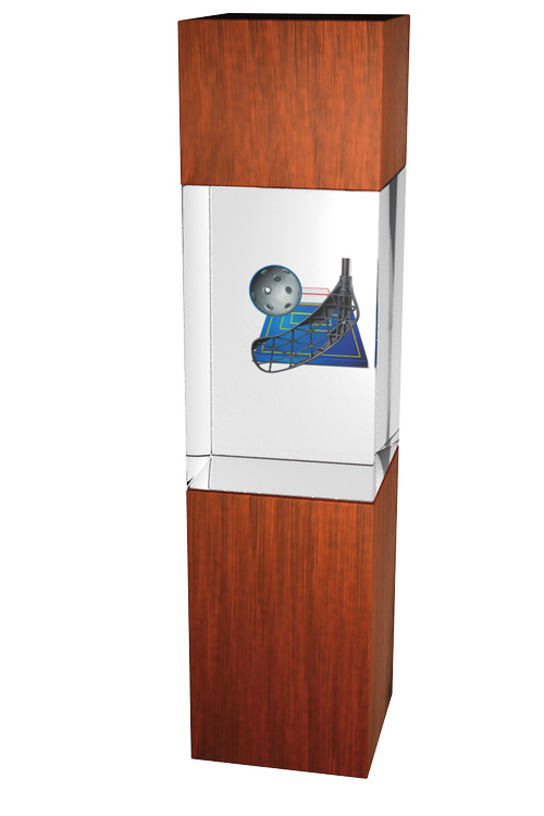 Skleněná trofej - kombinace skla a dřeva CR3067M9 | Florbal Výška cm: 24, Šířka cm: 5, Hloubka cm: 5
