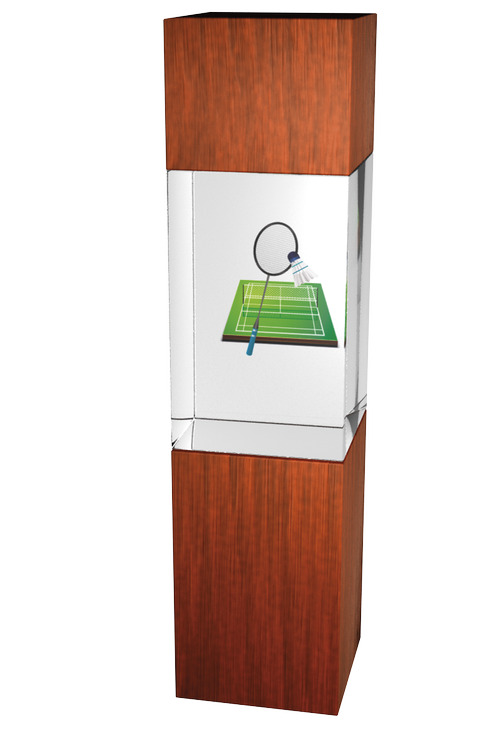 Skleněná trofej - kombinace skla a dřeva CR3067M12 | Badminton Výška cm: 24, Šířka cm: 5, Hloubka cm: 5