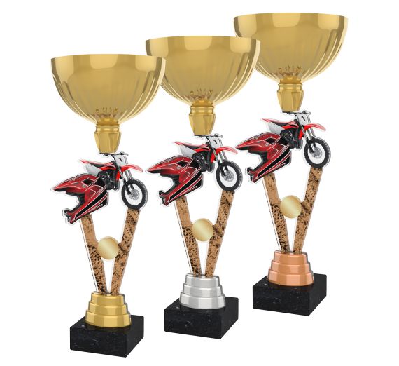 Akrylátová trofej. V ceně trofeje není zahrnuta cena štítku. Akrylátový motiv 0.6 cm. Držák motivu A-zlato, B-stříbro, C-bronz (možno vyměnit). Podstavec bílý nebo černý. Zlatý kalich. Výšky trofejí jsou orientační. Oboustranný tisk.