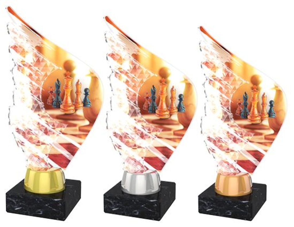 Akrylátová trofej. V ceně trofeje není zahrnuta cena štítku. Akrylátový motiv 0.3 cm. Držák motivu A-zlato, B-stříbro, C-bronz (možno vyměnit). Výšky trofejí jsou orientační.