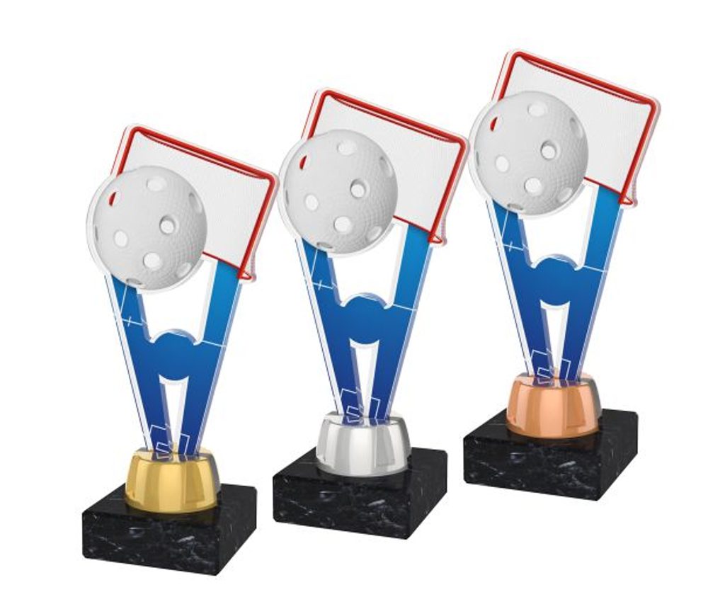 Akrylátová trofej ACUTMINIM23 | Florbal Výška cm: 16, Barva: zlato, Podstavec: černý